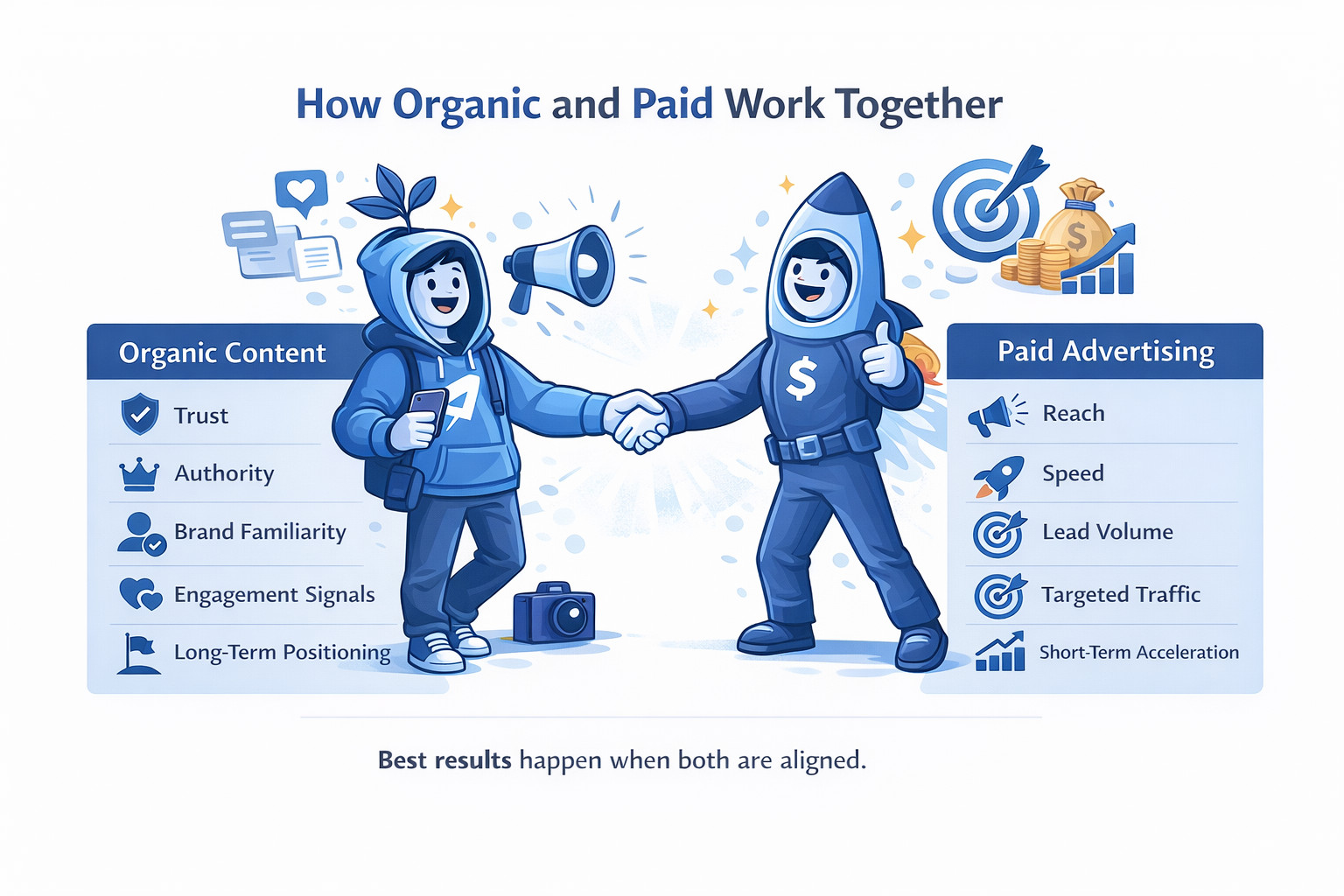 Organic and paid marketing should not compete. They serve different roles within a structured digital marketing strategy.